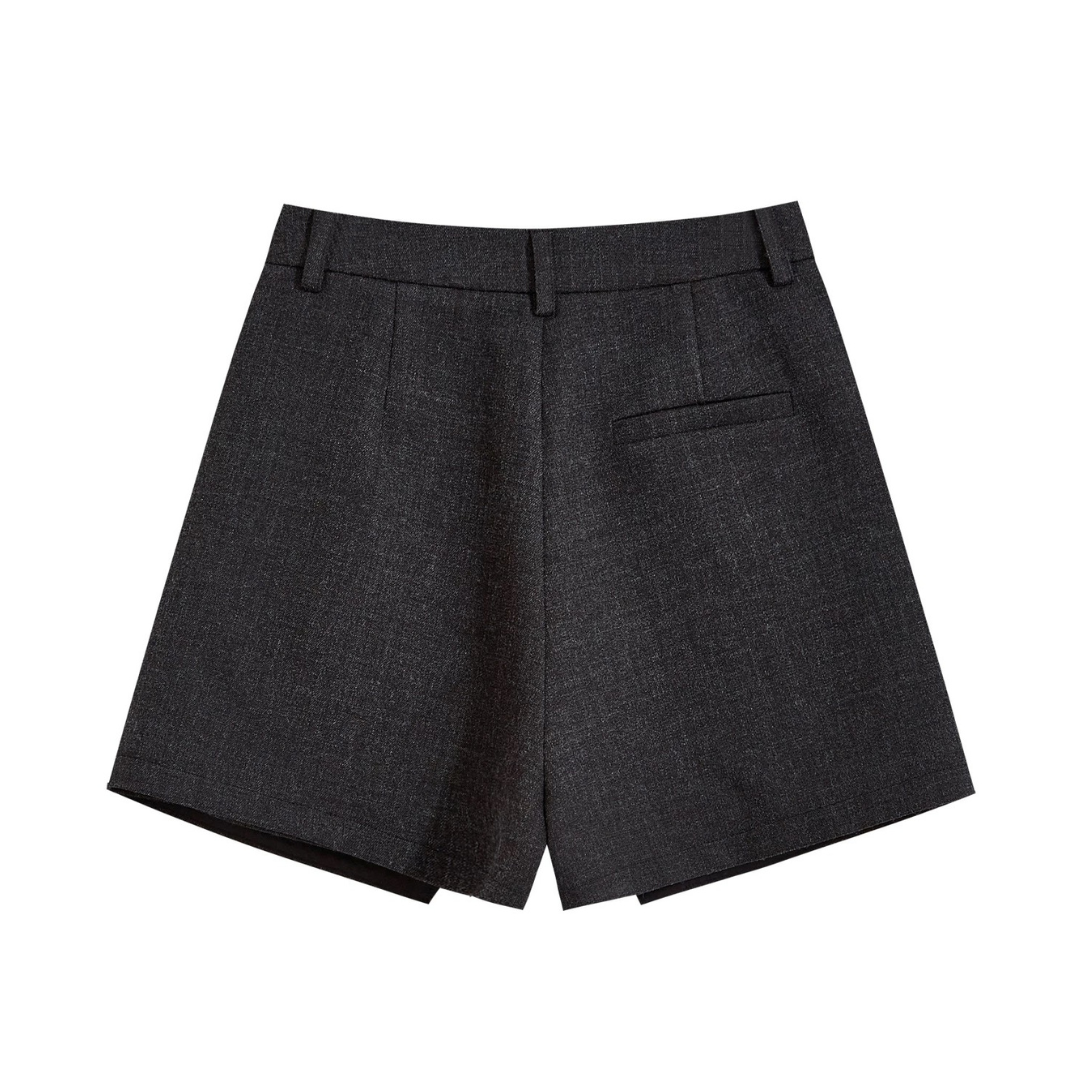 上品なウール調素材で仕立てた、ハイウエストショートパンツ。