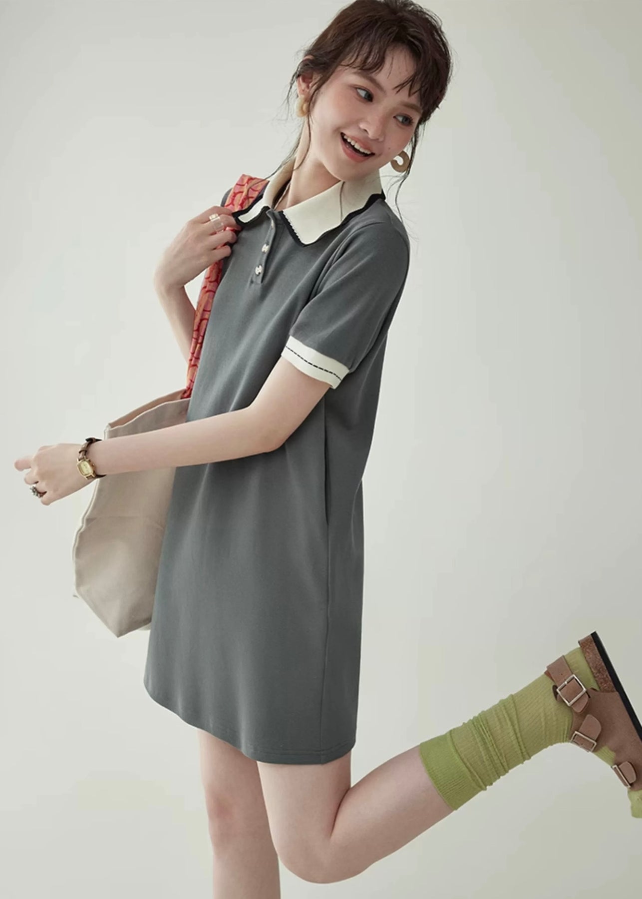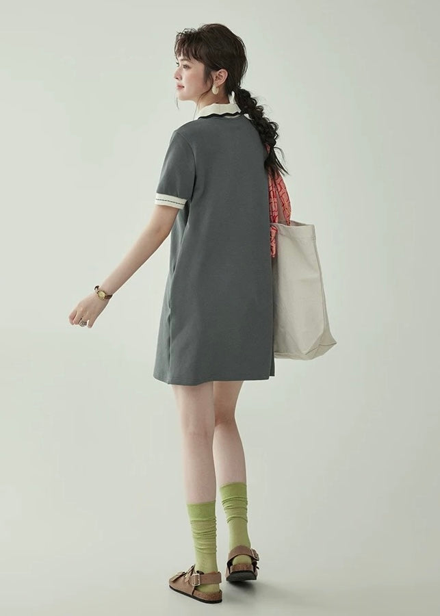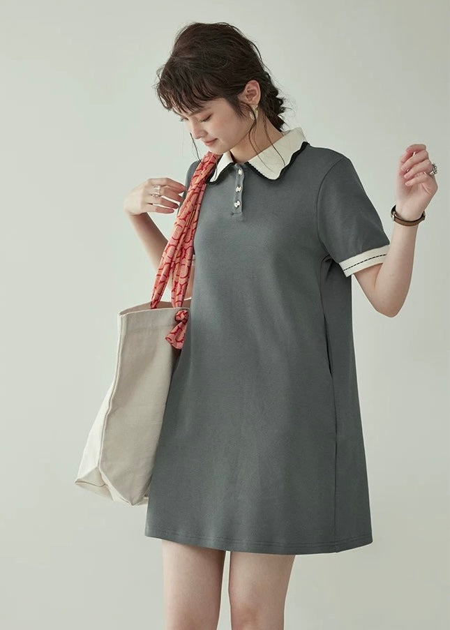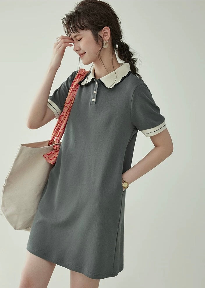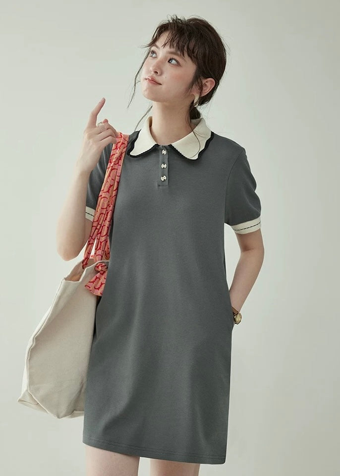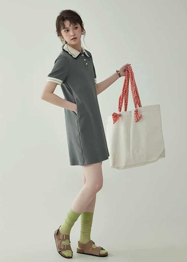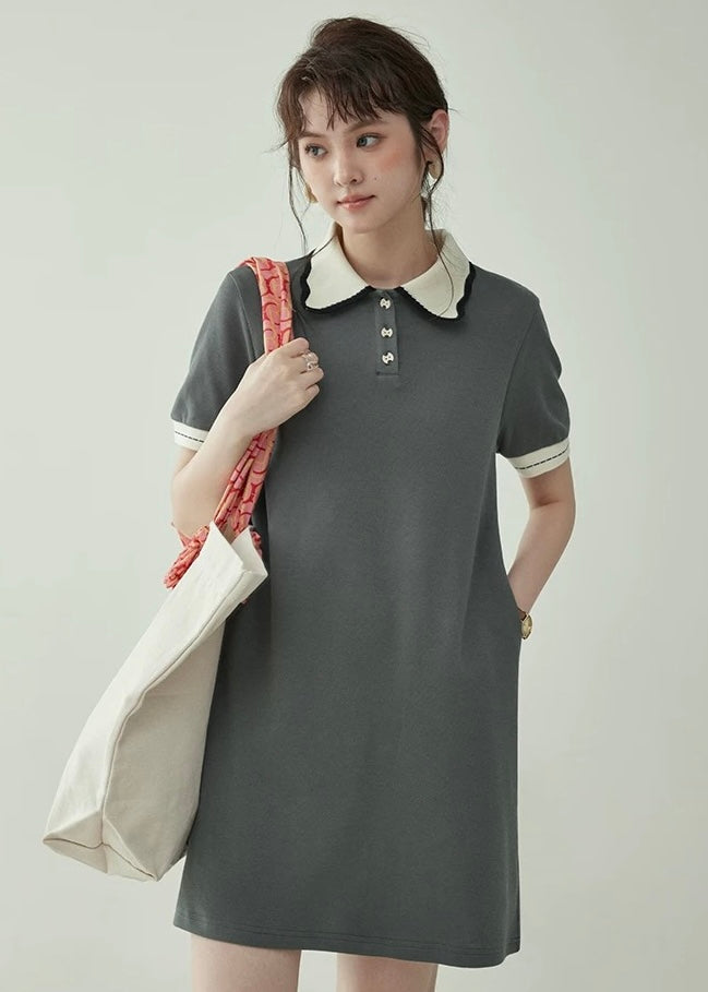 上品なバイカラーの襟が映える、クラシカルムードのポロワンピース。