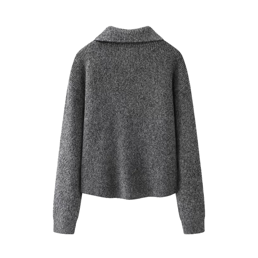 メランジグレーのハーフジップデザインが今っぽい、スタンドカラーのニットプルオーバーです。