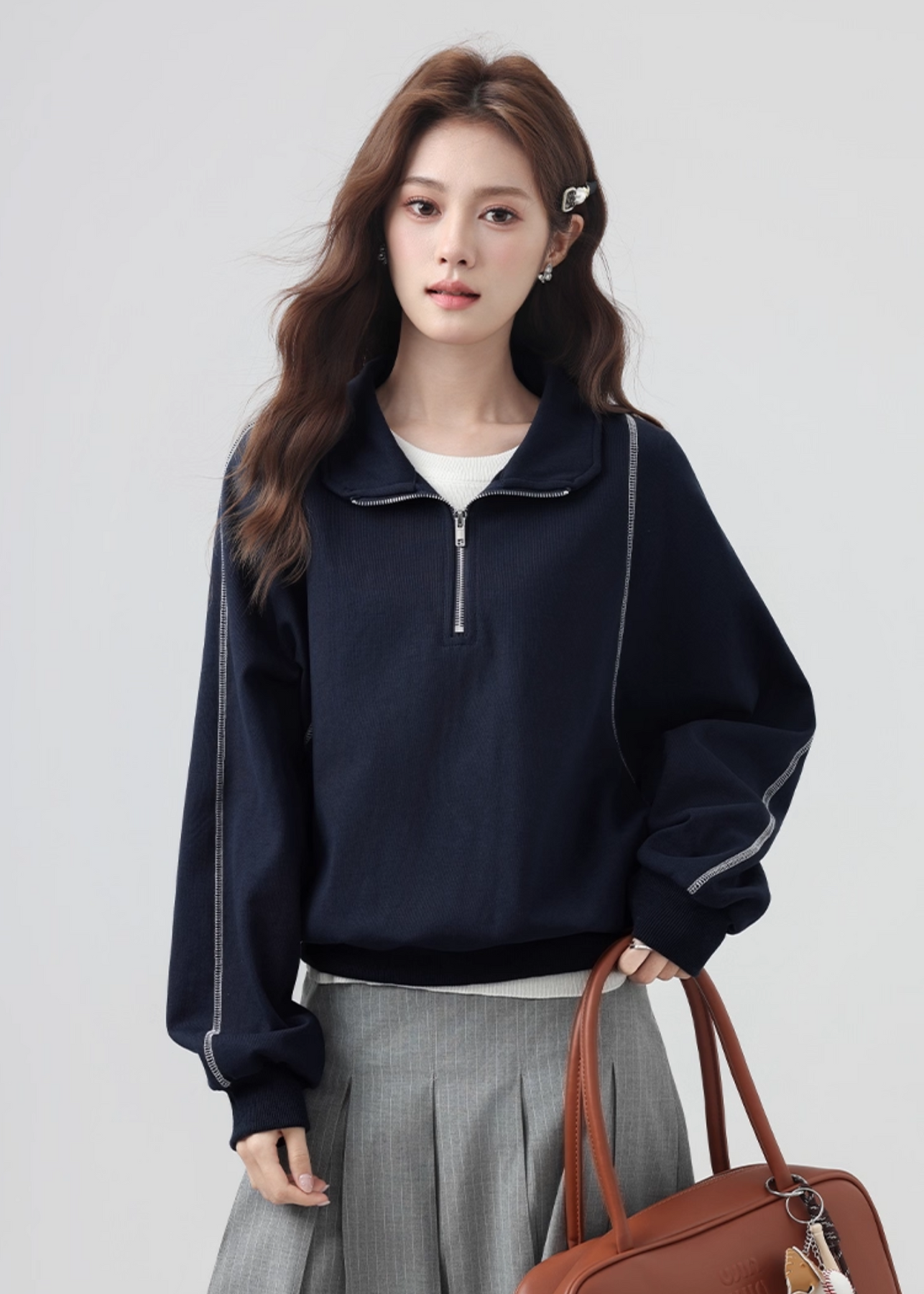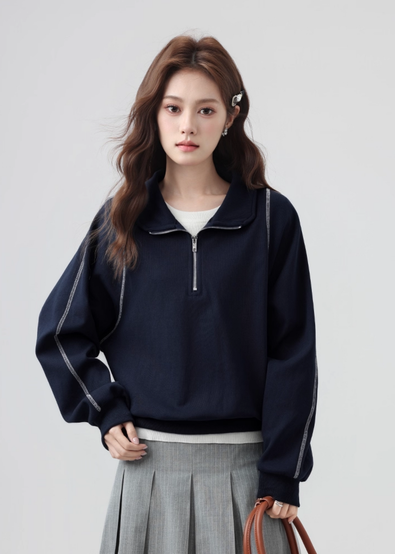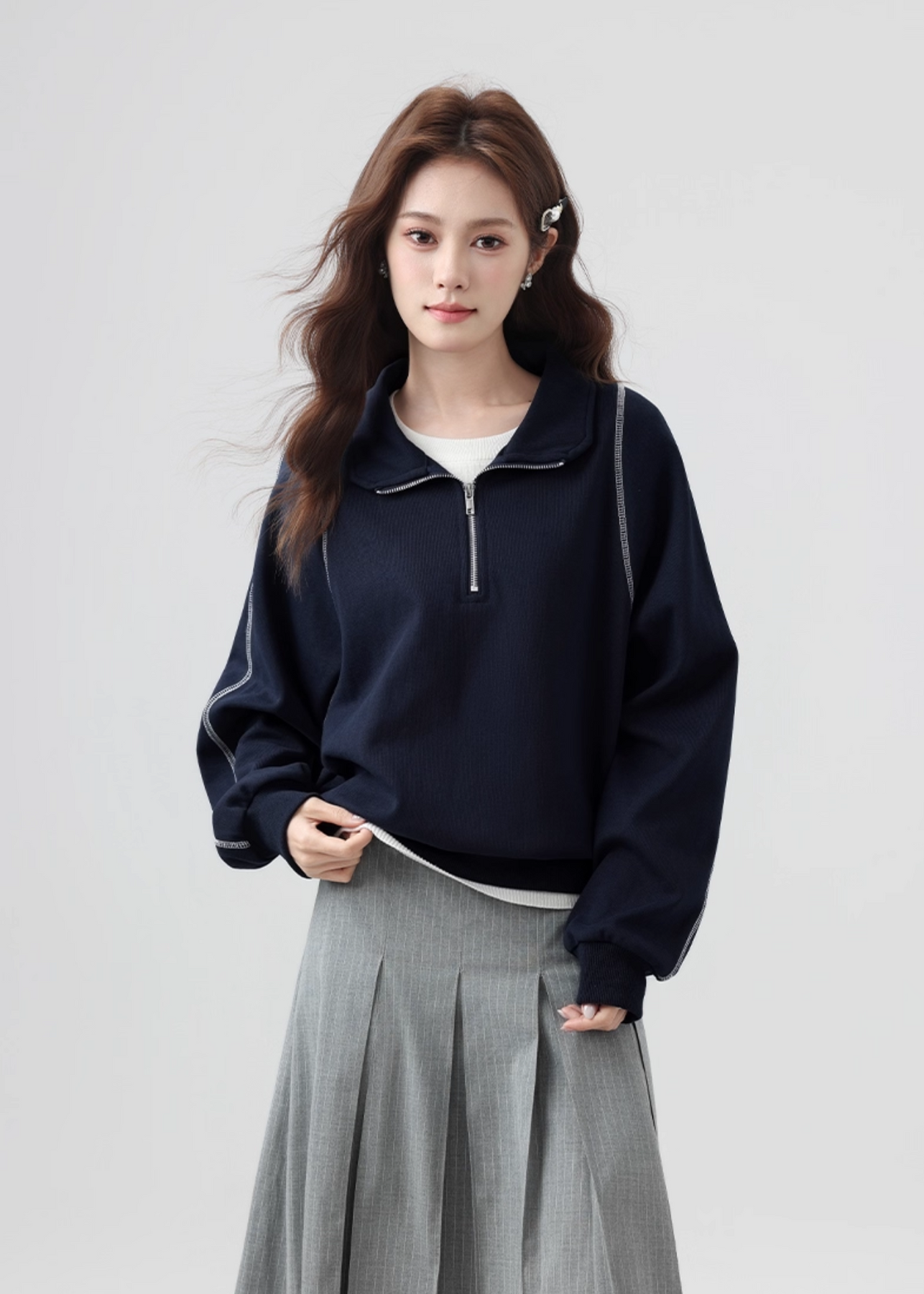 ハーフジップ仕様で着こなしに変化をつけられ、インナーとのレイヤードも楽しめます。