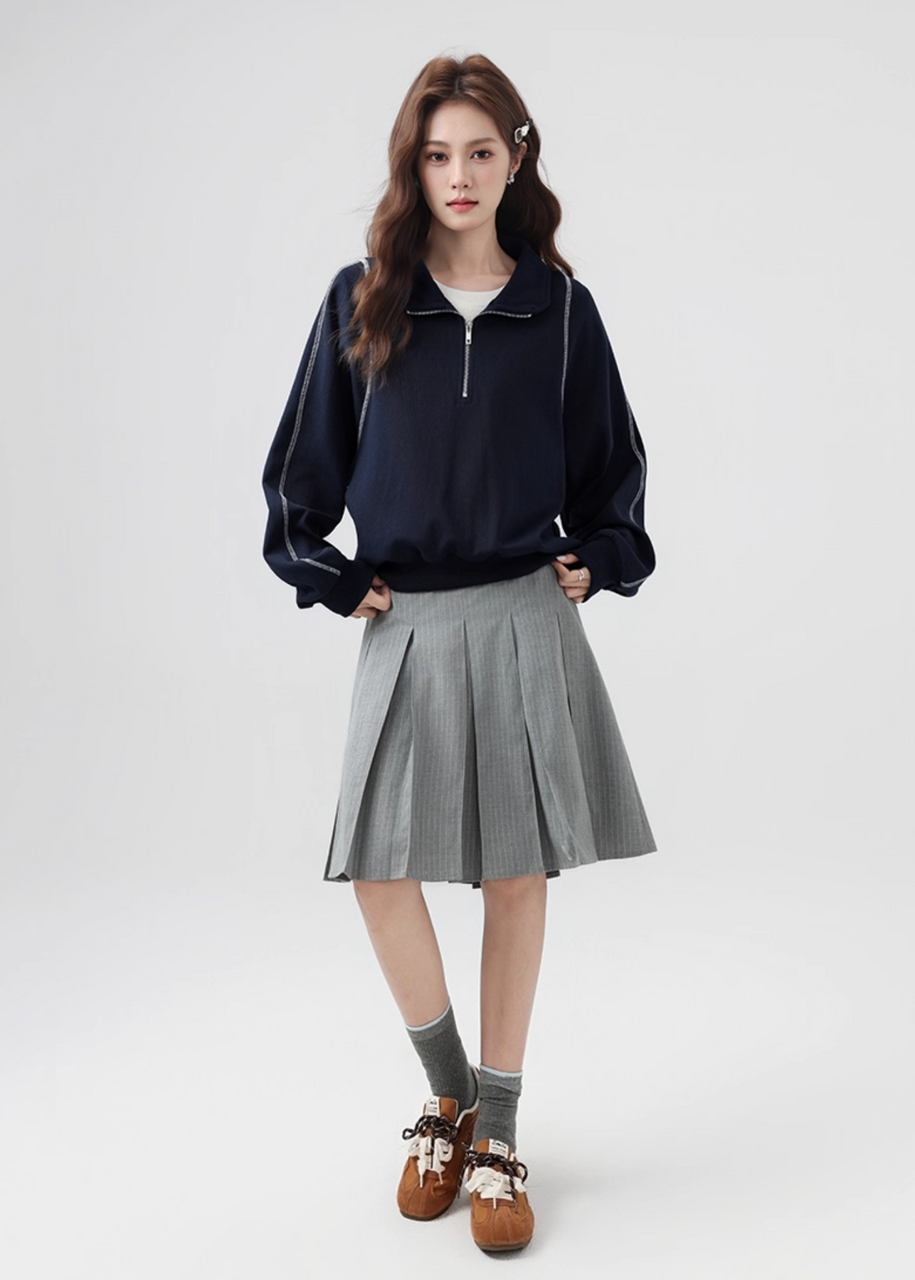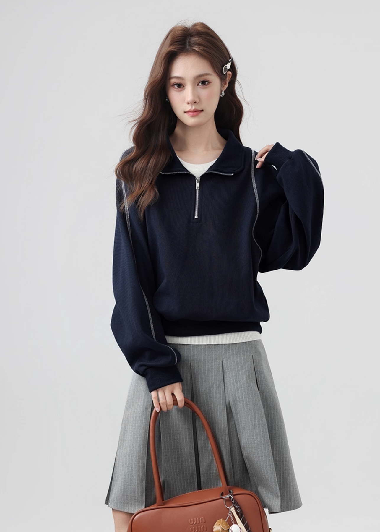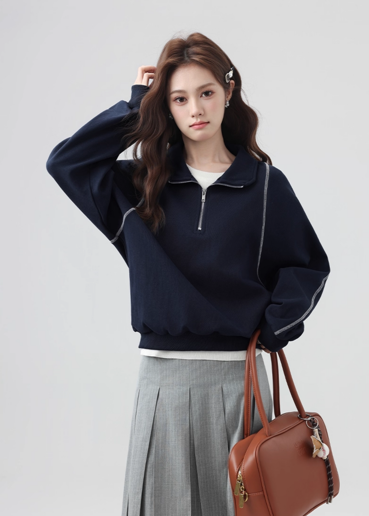 ハーフジップ仕様で着こなしに変化をつけられ、インナーとのレイヤードも楽しめます。