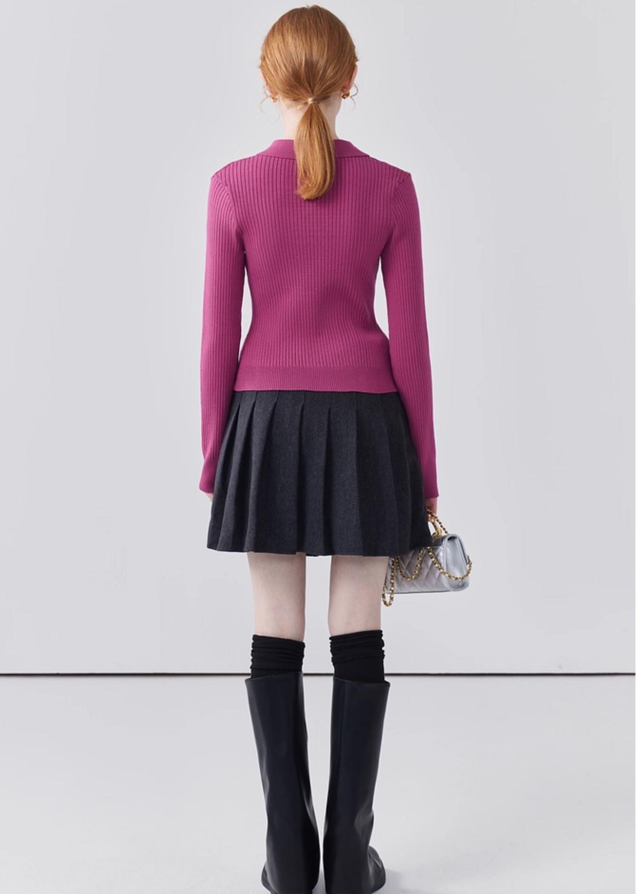 柔らかなリブ素材がボディラインにほどよくフィットし、立体感のあるシルエットを演出します。