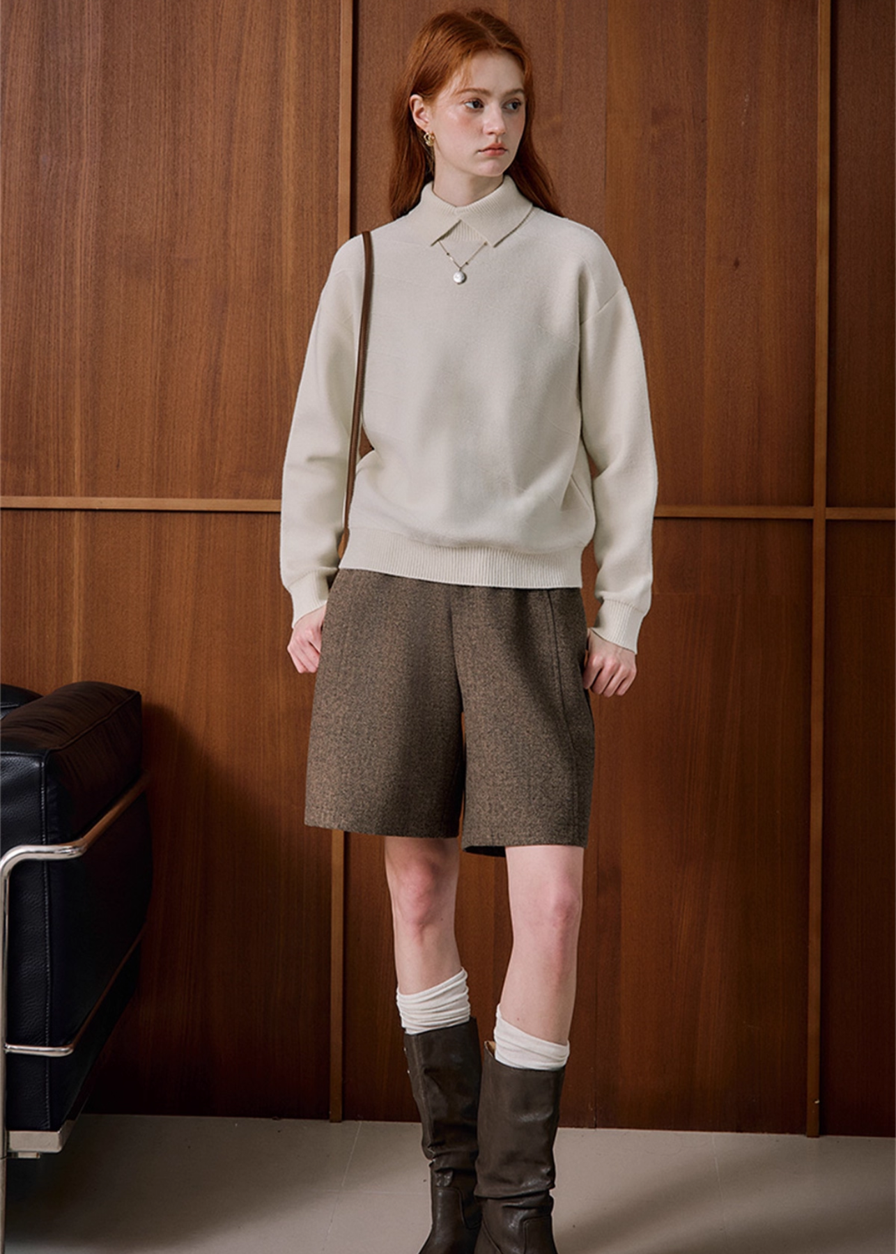 クラシカルな雰囲気漂う、ウール混素材のショートパンツ。