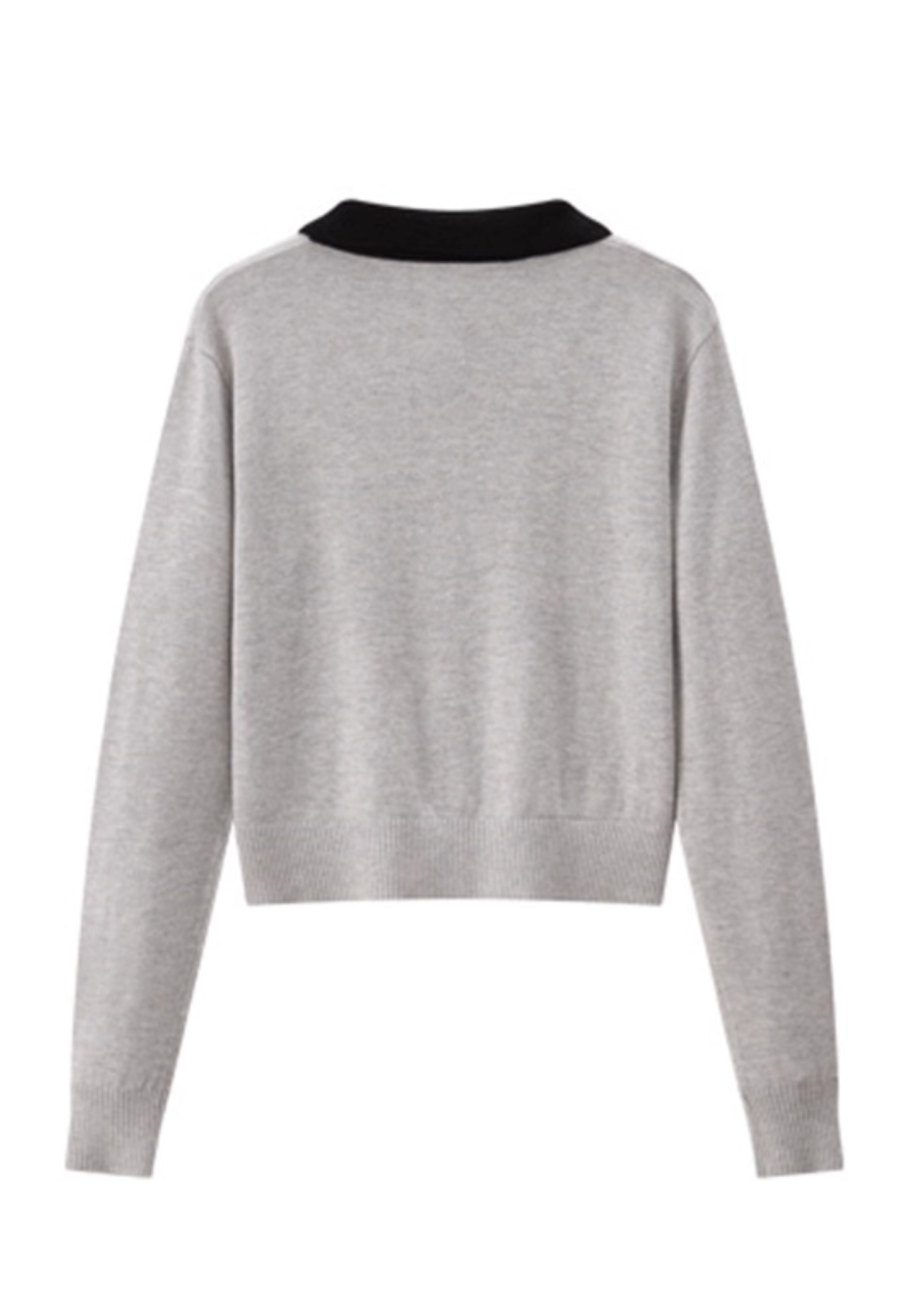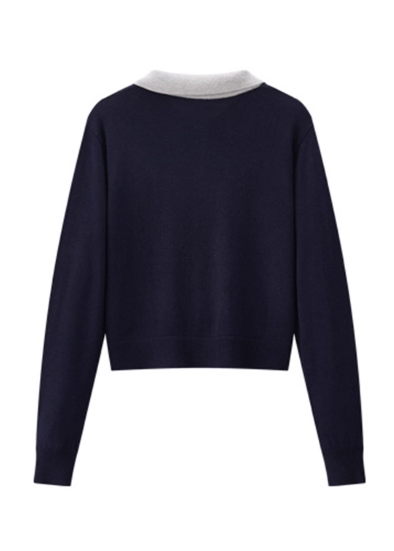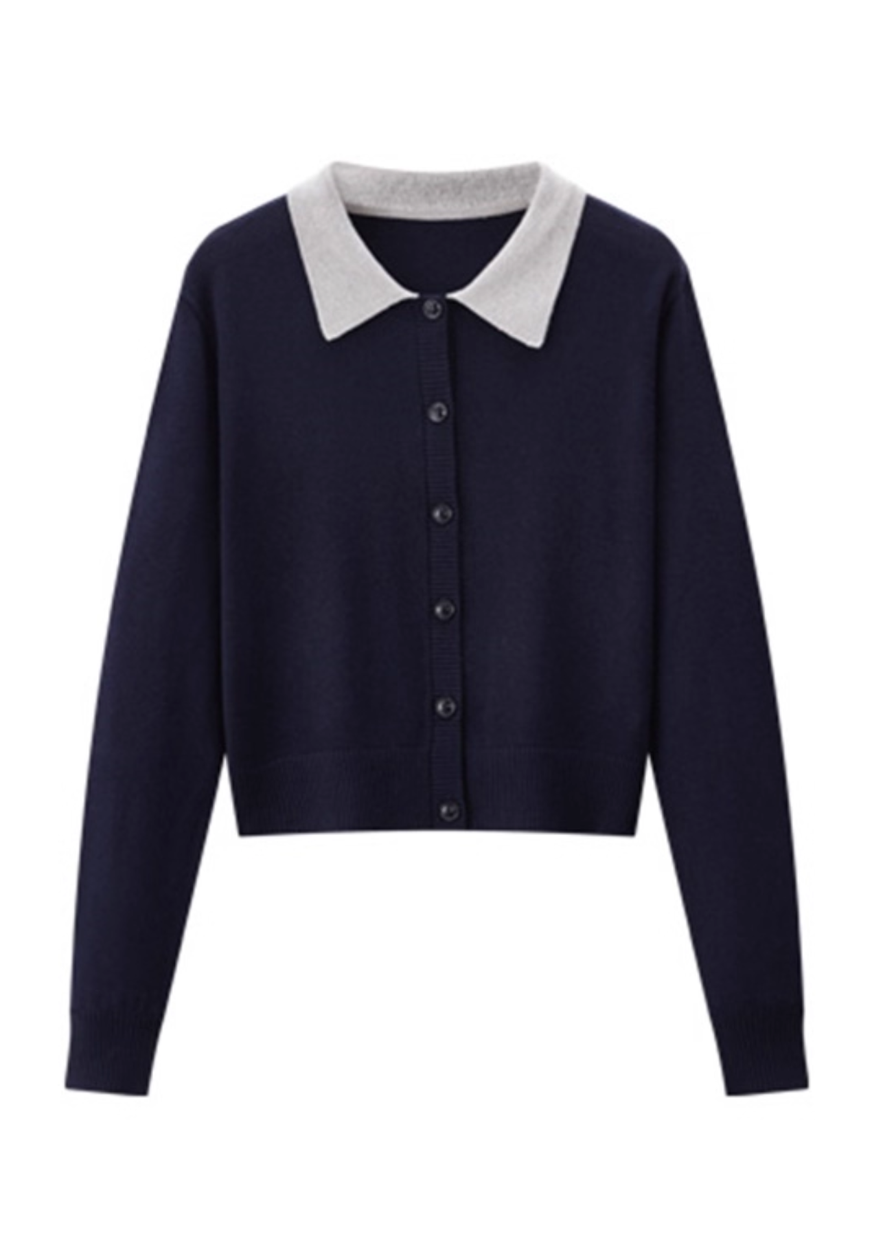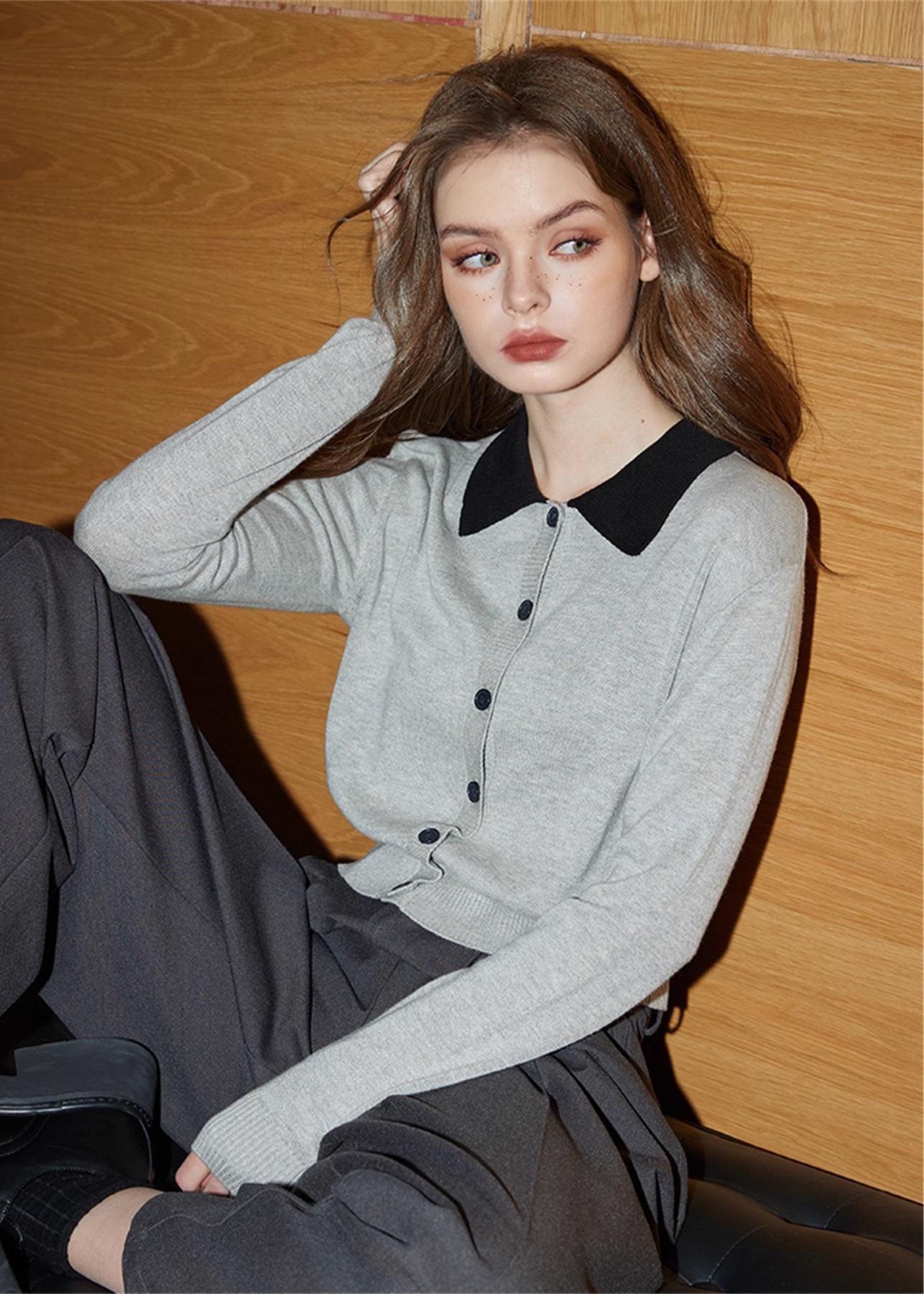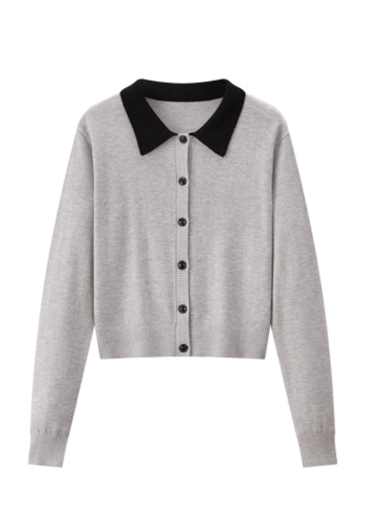 配色襟がアクセントになった、上品なショート丈カーディガン。