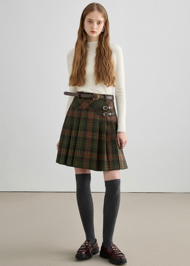 心が踊る、冬らしいギンガムチェックを纏ったギンガムビニープリーツスカート。